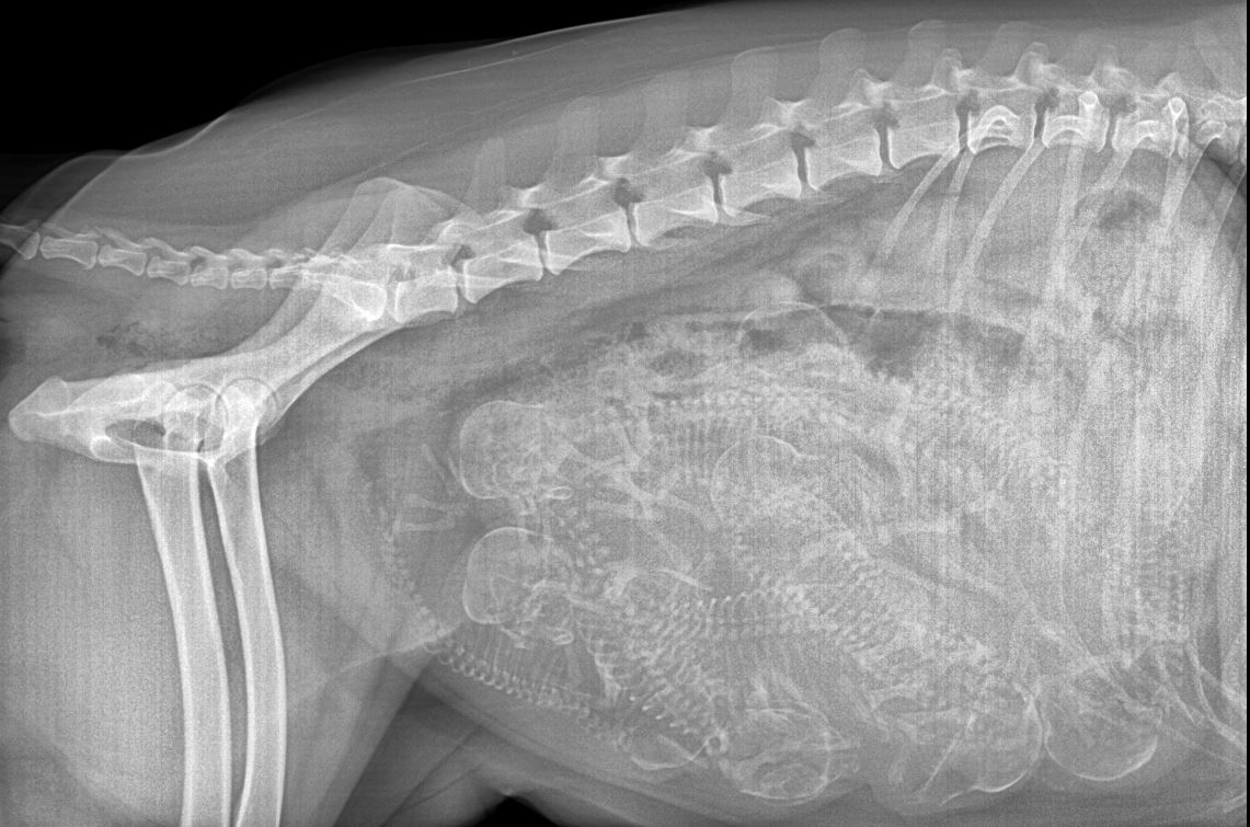 2 Hundebabies unterhalten sich im Bauch ihrer Mutter.